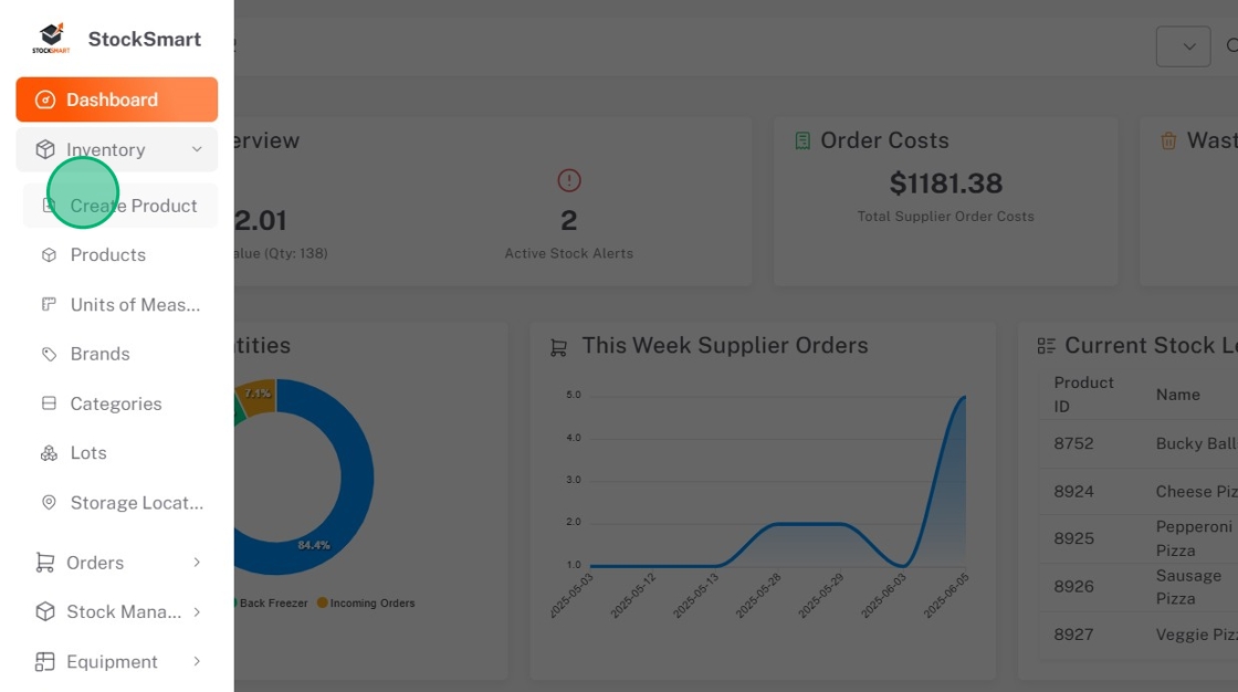 6. The product quantity will be set to zero. To add an initial product quantity, you can adjust stock levels in the Stock Management tab, see Adjust Stock Levels in StockSmart.