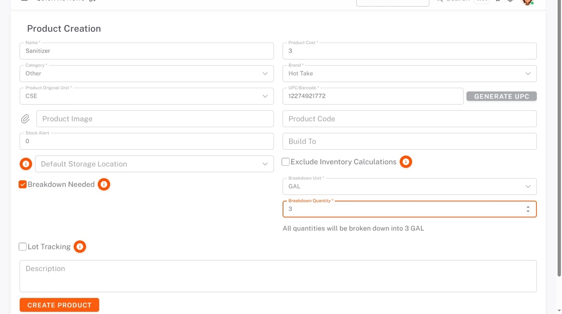 f. Type the UPC/Barcode. If there isn't one, click Generate UPC.
